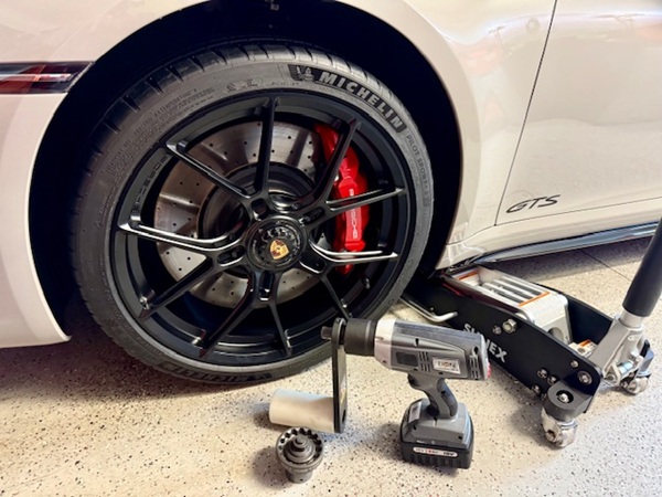 OEM Porsche GTS 992.1 (2020-2025) ultra lightweight centerlock magnesium wheels, tires (Michelin Pilot Sport 4S 245/35/20 & 305/30/21) Porsche TPMS and black valve stems 992.1 GTS - 1,000 miles - factory GTS option for 992.1 or 992.2 with cost of $20,000 from Porsche - Weissach / Manthey development designed and reduces weight and rotating mass by 7.8kg for set.