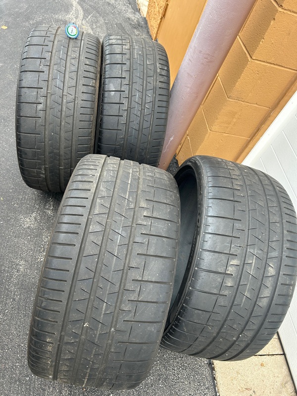 Selling a slightly used Cayenne 22" Pirelli P-Zero Corsa tire set. 285/35ZR22 fronts with 3522 date codes measuring 7-7.5/32". Rears are 315/30ZR22 with 0723 date codes also measuring 7-7.5/32". Local pickup in Wisconsin or shipping extra. $750 Call 262-352-7764.
